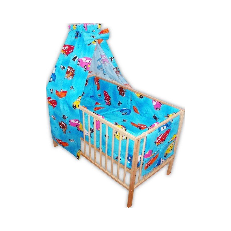 Lenjerie patut bebe cu 7 piese masinute albastru