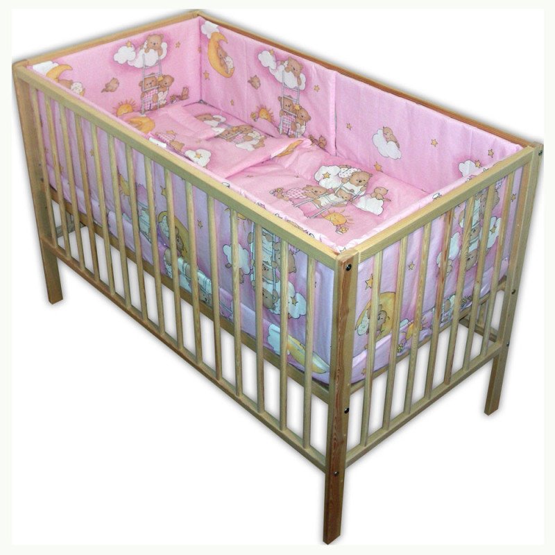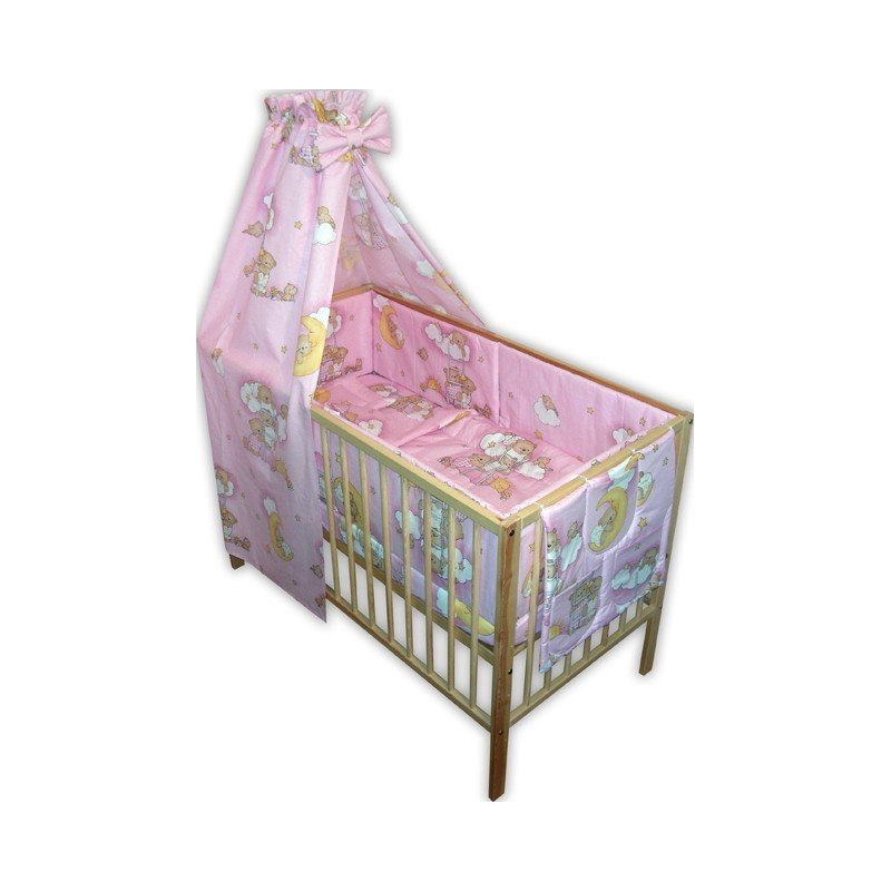 Lenjerie patut bebe cu 7 piese ursuletul somnoros roz baldachin