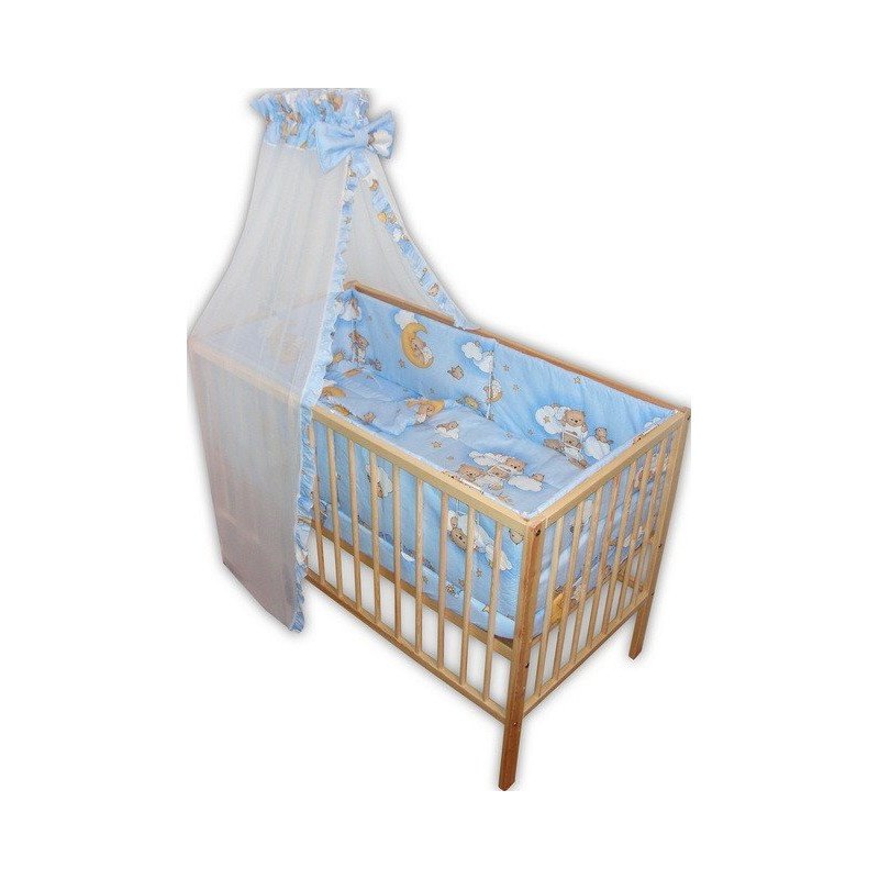 Lenjerie patut bebe cu 6 piese ursuletul somnoros albastru cu baldachin din voal