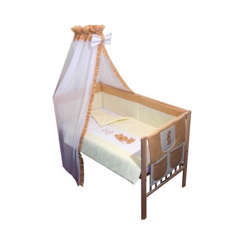 Lenjerie patut bebe brodat cu 7 piese crem cu baldachin din voal