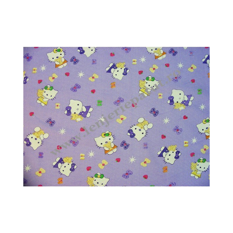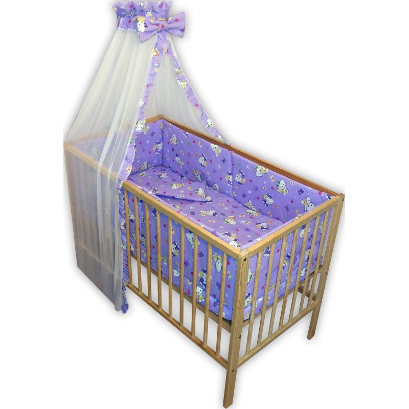 Lenjerie patut bebe cu 6 piese pisicuta mov cu baldachin din voal