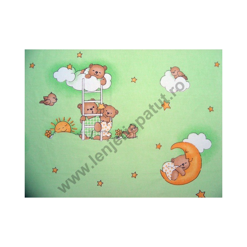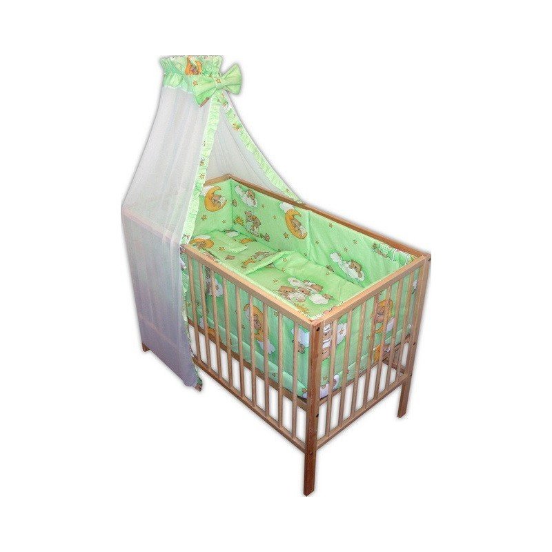 Lenjerie patut bebe cu 6 piese ursuletul somnoros verde cu baldachin din voal