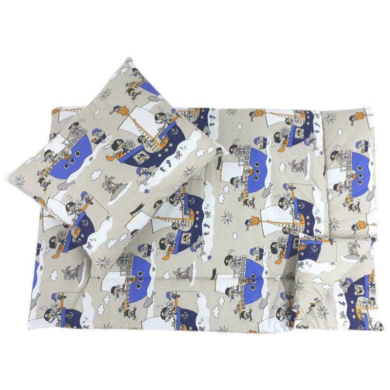 Pilota este umpluta cu vatelina, iar perina cu microfibra de poliester moale si pufoasa, ofera un somn linistit copiilor.