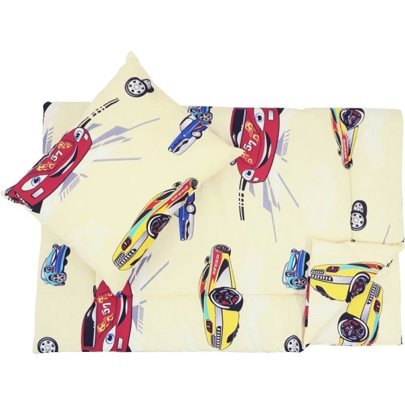 Lenjerie pat copii masinute crem 100x135 cm, 40x50 cm