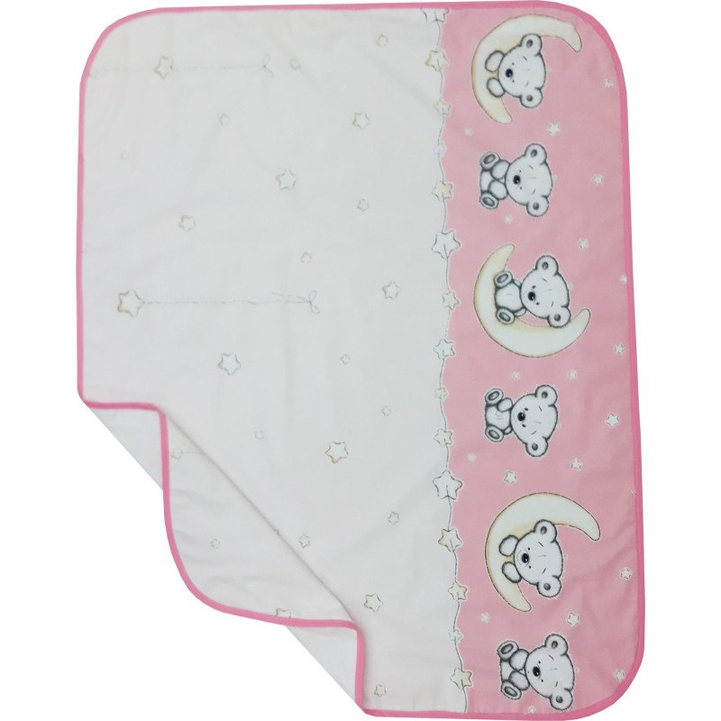 Paturica are doua fete, o parte a paturei este confectionata din bumbac alb, in timp ce cealalta parte este confectionata din bumbac 100%, colorat cu imprimeuri vesele.