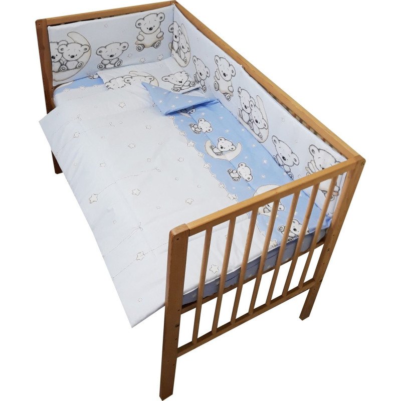 Lenjerie patut bebe cu 4 piese ursuletul pe semiluna albastru