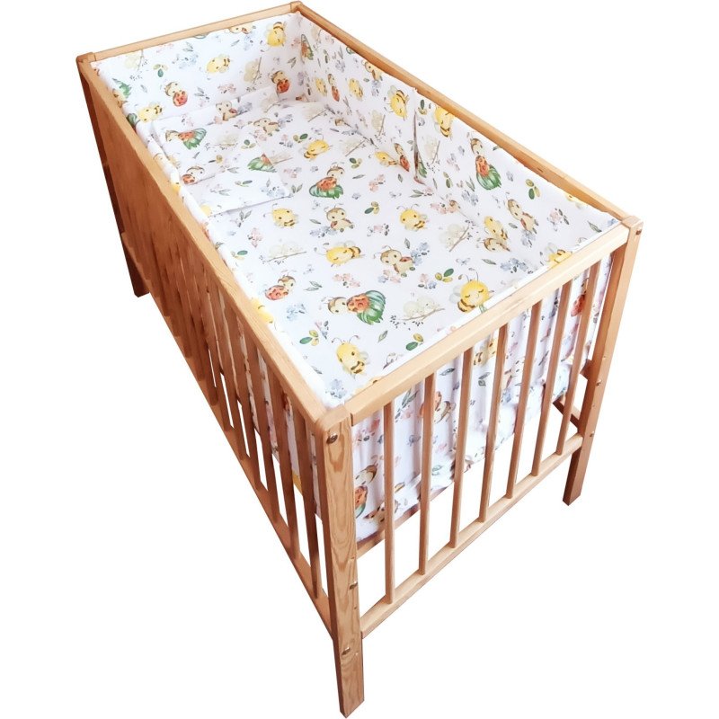 • Include in plus 2 aparatoare laterale pentru a proteja interiorul patutului in intregime, jur-imprejur pe ambele laterale, la cap si la picioare. Aceste piese sunt foarte importante pentru siguranta bebelusului, protejandu-l de lovituri sau accidente in timpul somnului. In acelasi timp, fereste copilul de curentii de aer din incapere in timpul somnului.